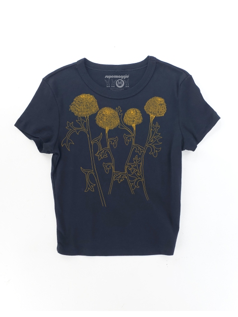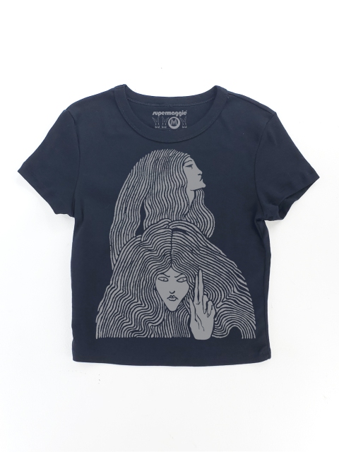Fitted fit! Stretchy, 52% cotton, 48% polyester 1x1 micro ribbed fabric. Printed and finished at Supermaggie HQ. Body sewn in Nicaragua.