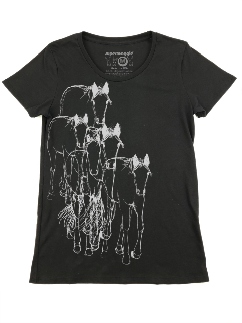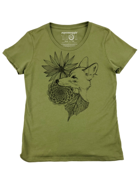 Regular fit. 100% Organic Cotton. Made in USA. Printed and finished at Supermaggie HQ.