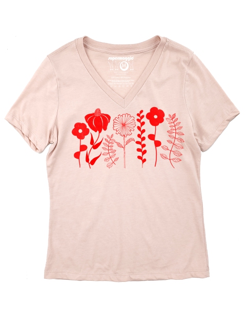 The Vera is made from a soft, lightweight blended fabric and features a lovely V neckline. Fit is the same as our popular Calliope Tee :) Hand printed to order at Supermaggie HQ.